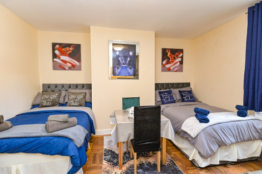 Our Double Deluxe Apartment (Apartment 3) consists of Two Double Beds and One Single Bed In an Adjoining Room with a bathroom with body washes provided. We also offer a fully functional Kitchen and dining room set which sits 4 people so you can do just about anything. other amenities do include a T.V, Microwave, Mirror, Kettle, Fridge, wardrobe and draw set also a welcome tray…