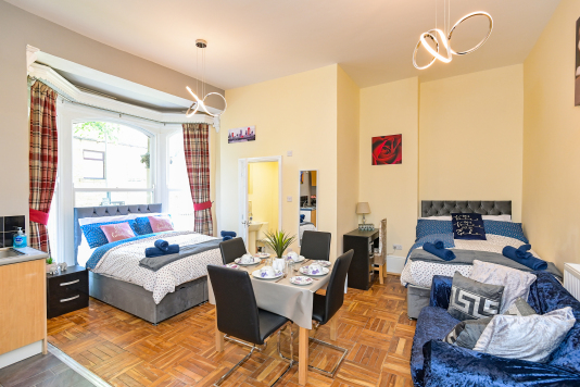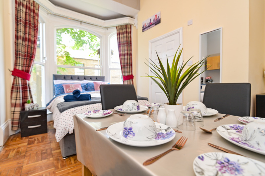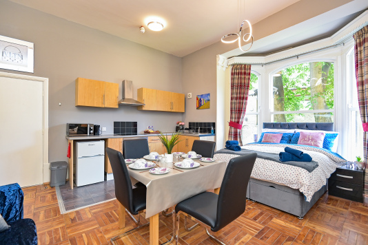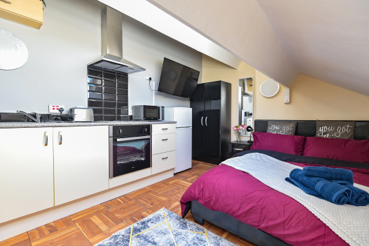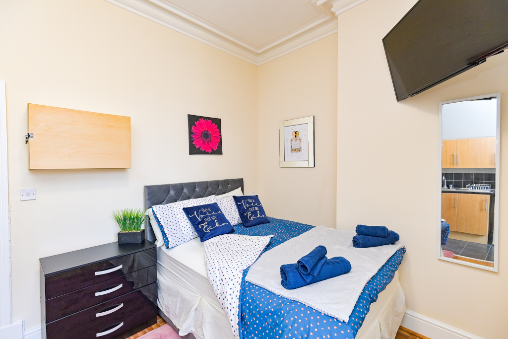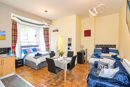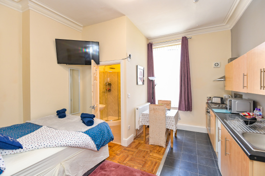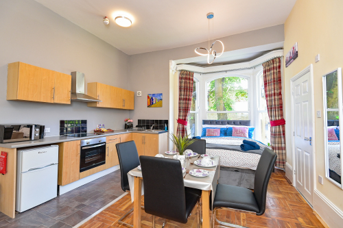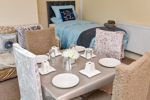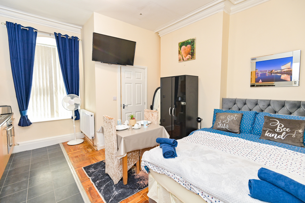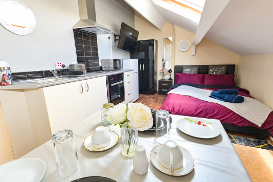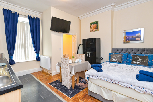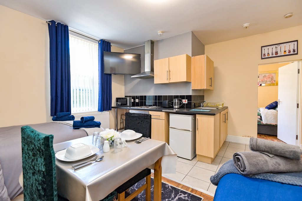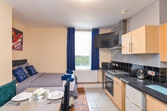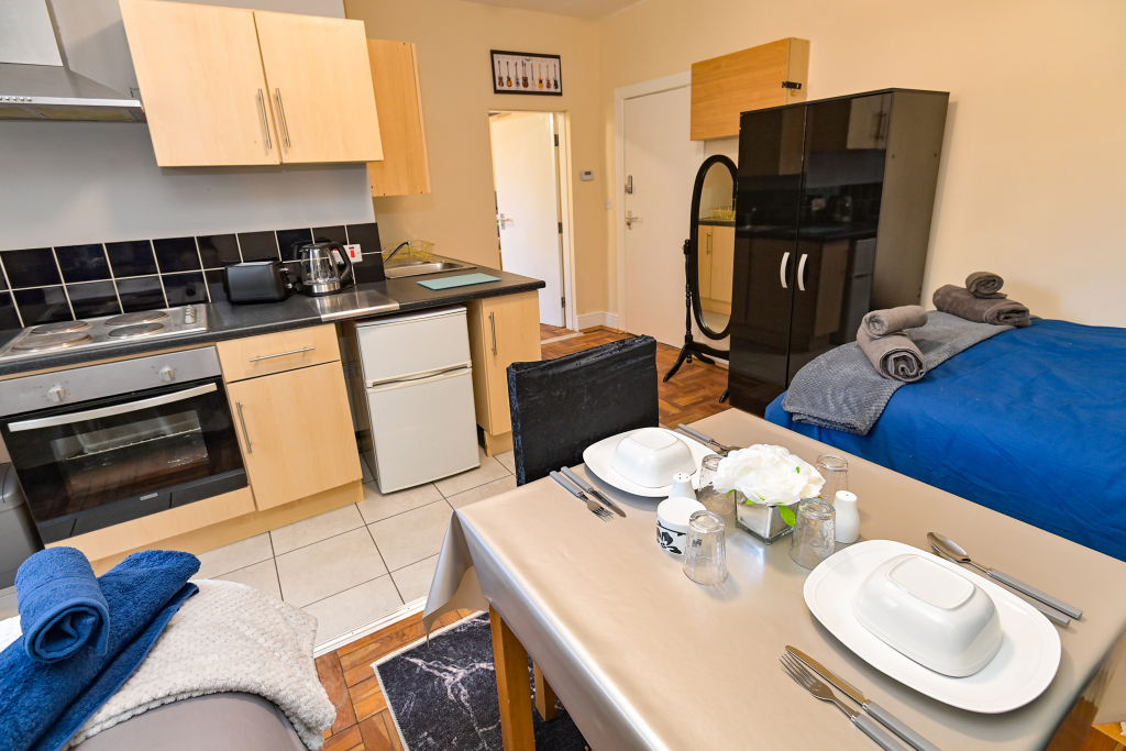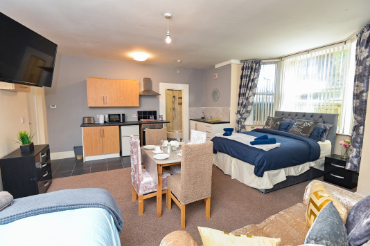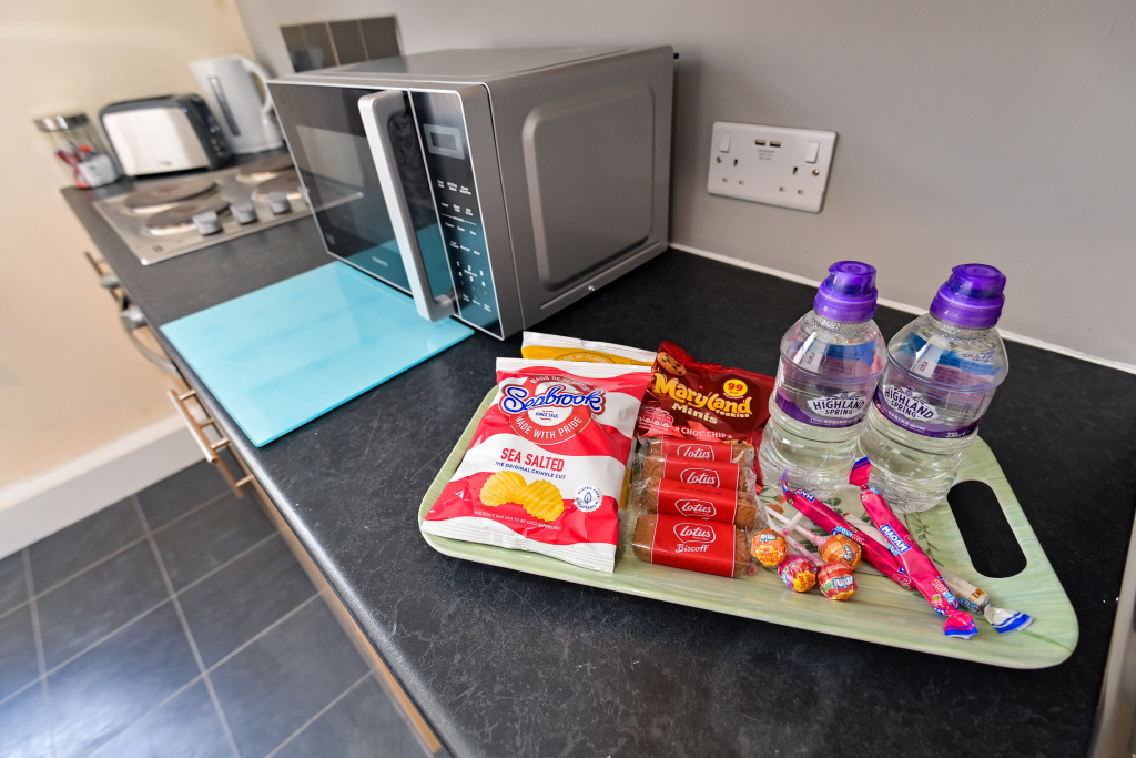 Our Rooms all come with a fully functional Kitchen and dining room set which sits 2 to 4 people so you can do just about anything. We all our rooms range from Double beds to king sized beds, Other amenities do include a microwave, Mirror, Kettle, Fridge, wardrobe and draw set also a welcome tray of various snacks such as Maryland biscuits and sea-brook crisps.