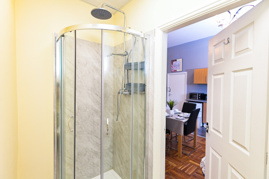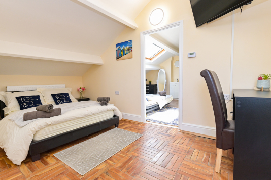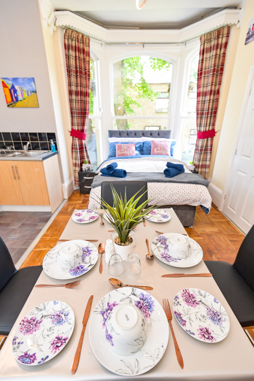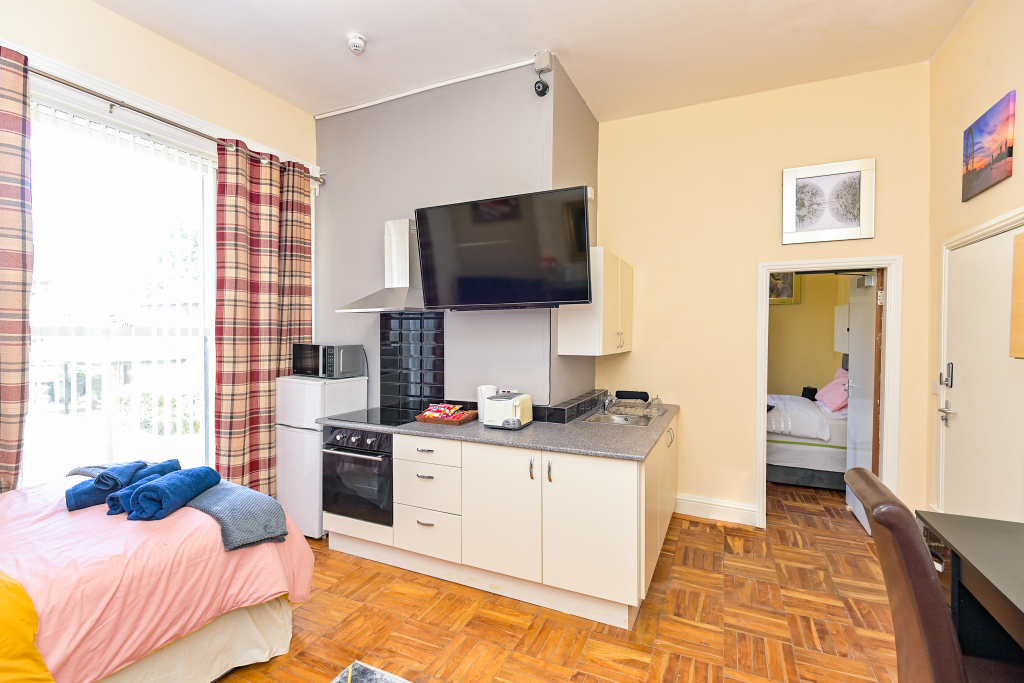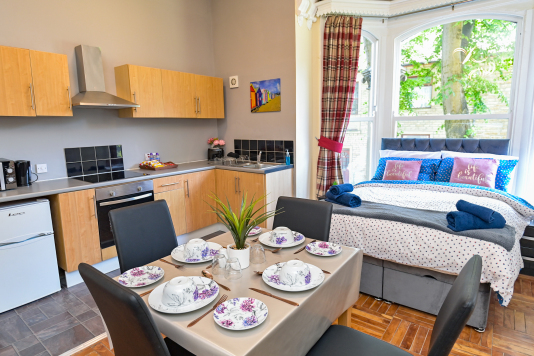 Our Deluxe Room (Apartment 5) consists of a double bed with a bathroom with body washes provided. We also offer a fully functional Kitchen and dining room set which sits 2 people so you can do just about anything. other amenities do include a T.V, Microwave, Mirror, Kettle, Fridge, Wardrobe and Draw-Set. Also a welcome tray of various snacks such as Maryland biscuits…